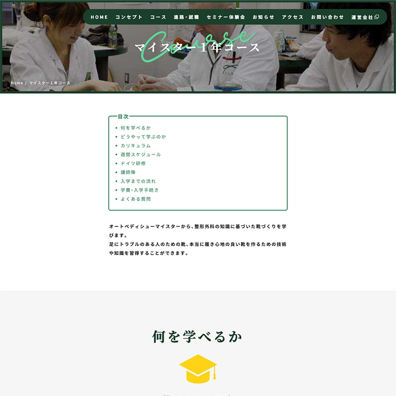 ドイツのオートペディ技術を基にした靴製作技術者の養成。 ドイツのハノーバー・マイスター学校と業務提携によるカリキュラム。